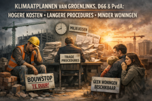 Partijen als GroenLinks, D66 en PvdA hameren op klimaatneutraliteit en strengere normen. Op papier klinkt dat nobel. In de praktijk betekent het: hogere bouwkosten, langere procedures en minder woningen.